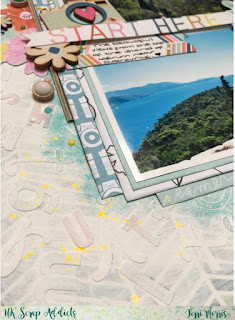 The background paper I had used was one from my "oops" bag which is my stash of papers that I don't like / have gone off / have got ruined in some way. I use these whole single sheets to make sure my finished layout stays at a square 12x12 when I'm adding pieces together to create my base layer. It just so happened here that this sheet went really well with my chosen teal and mustard coloured paper and fitted the theme of the school layout so even though I didn't particularly like it, it worked really well for the bottom section and I didn't mind wasting the rest under the remaining areas of the layout. Those who know me are laughing because I really really don't have a shortage of paper so I don't really need to keep and use bits that I don't love in order to stretch the many many sheets that I adore!